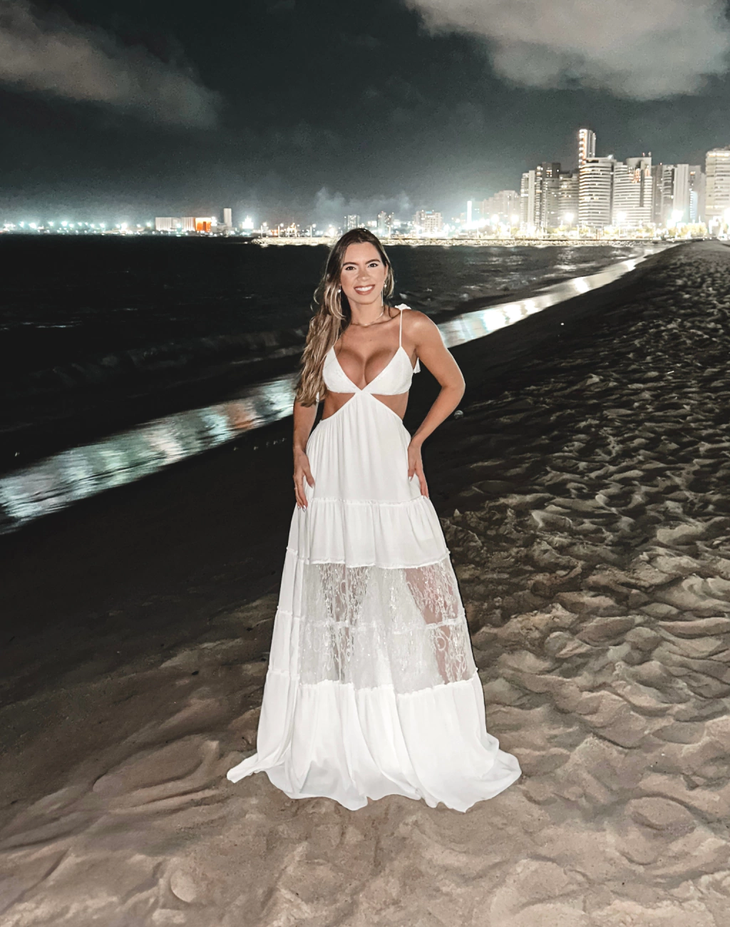 Medidas da Andreza (modelo 1): Altura: 1.62 | Busto: 85cm | Cintura: 72cm | Quadril: 104cm |